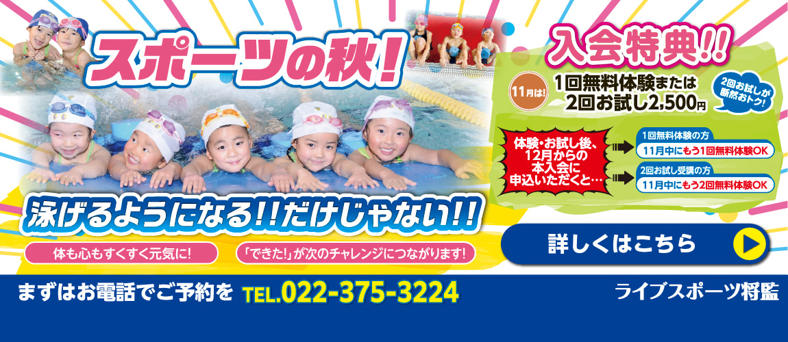 スポーツの秋!泳げるようになる!!だけじゃない!!-11月キャンペーン